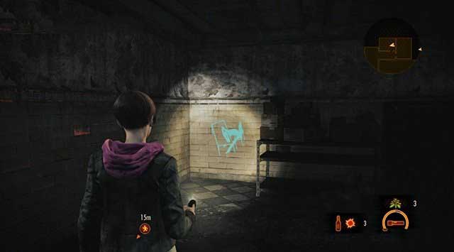 继续走更加的黑暗,并有不少的僵尸出现。搜索走廊和储藏间,取得止血带和"实验进行注意事项",文件上写着犯人感应器上颜色的意思。