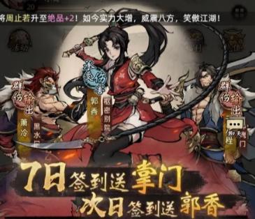 侠客获取的第2个方式就是大家可以通过进入游戏的签到来获取。因为在目前各位小伙伴进入到游戏的时候都会是新人,游戏当中,新人如果是首次登录的话,就会有7天签到的机会可以参与。但这个签到必须是连续起来的。这一次的签到周期中,奖励的一些道具都是等级特别高的。不只有一些珍惜货币之类的道具,而且侠客奖励就是在大家完成了7天签到之后,就是可以领取的一些奖励了,并且赠送的还是群豪属性的侠客。